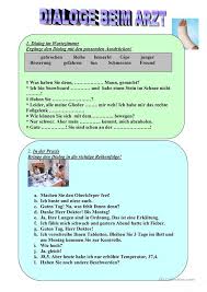 Beim arzt arbeitsblatt. Verschiedene aufgaben zum thema beim arzt this downloadable printable was created for grundschule klassen 1 4 and haupt und realschule klassen 5 13 at grundstufe a1 and grundstufe a2 level. Eine ubung zum themabereich arzt korperteile die sowohl als auch ein arbeitsblatt als auch klassenarbeit benutzt werden kann. Wortschatzblatt beim arzt krankheiten medikamente.